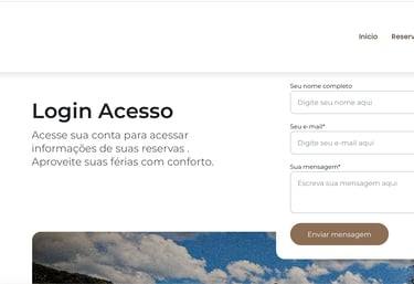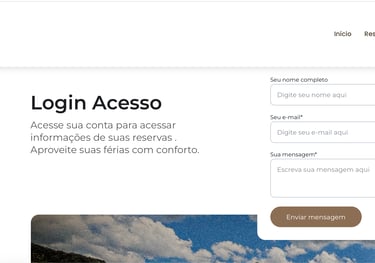 Descubra a nossa plataforma de reservas para casas de temporada, ideal para o verão, com um design clean e sofisticado que reflete nossa identidade visual em tons marrons e bege.